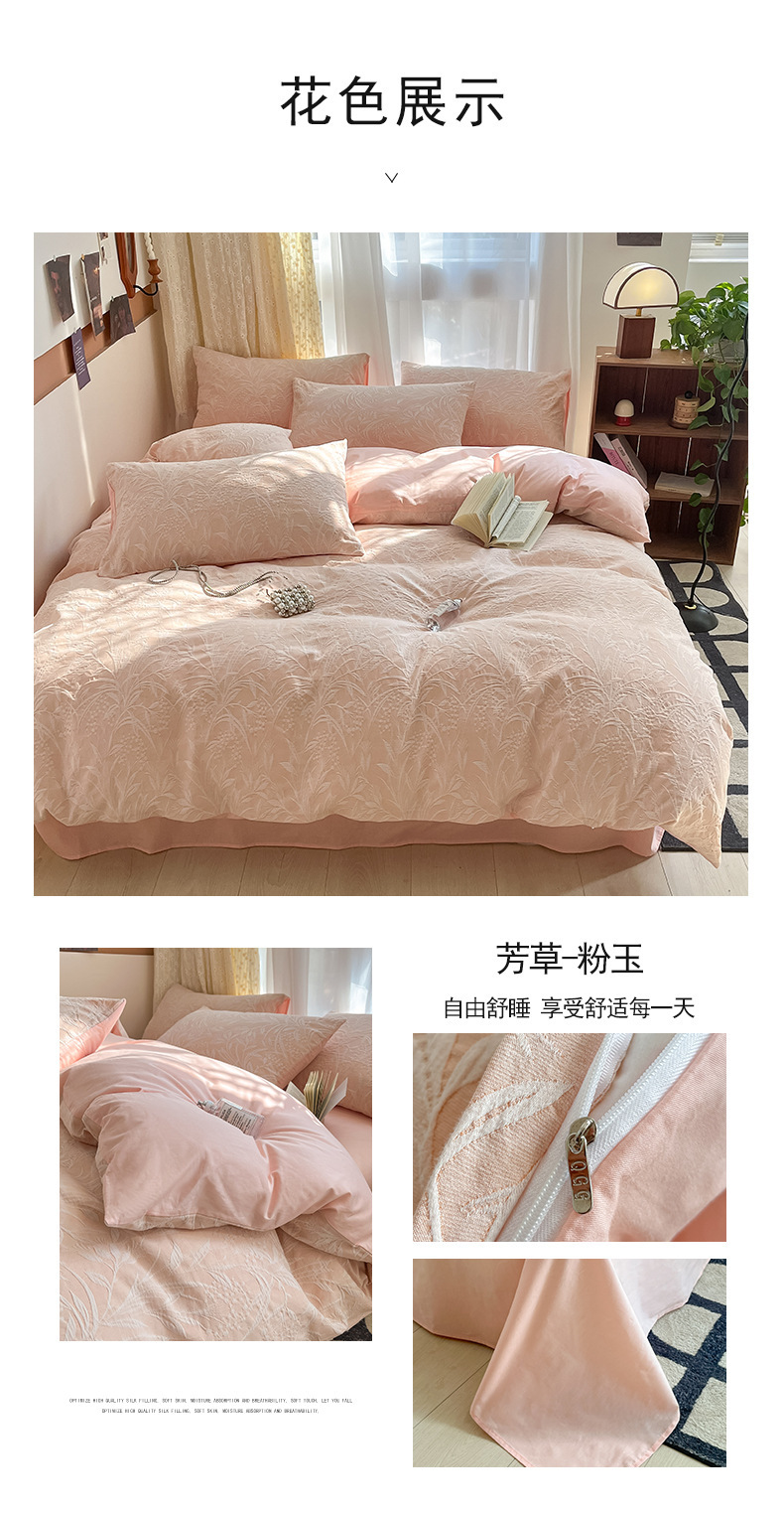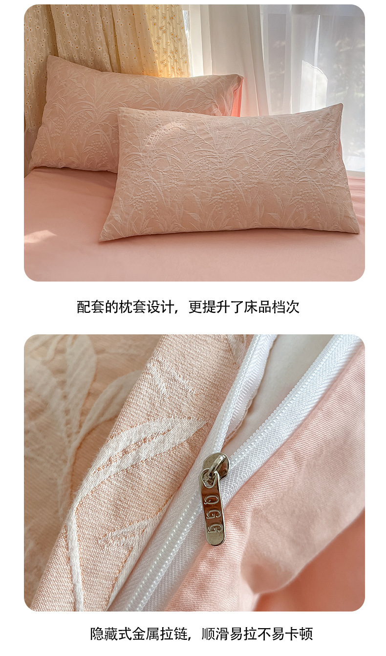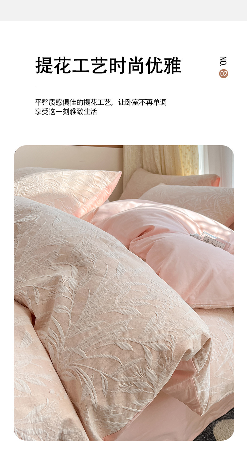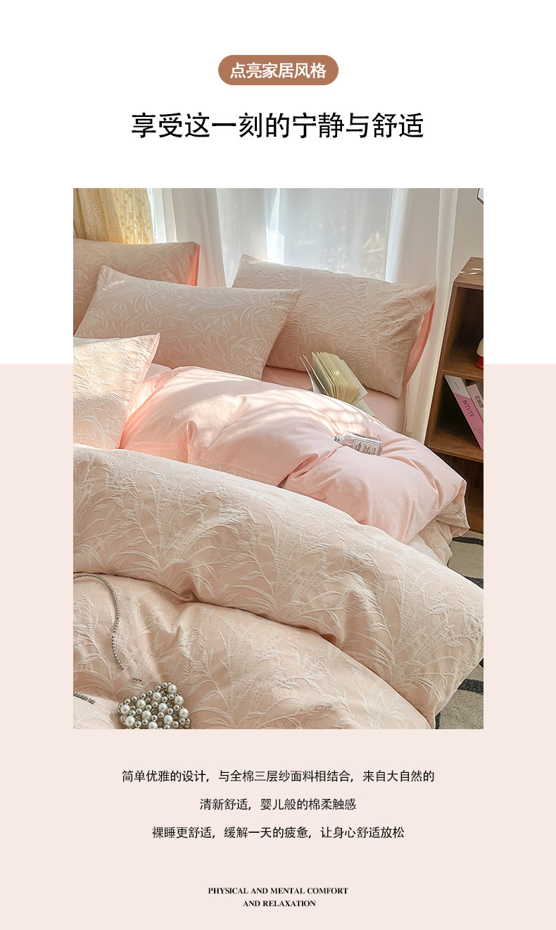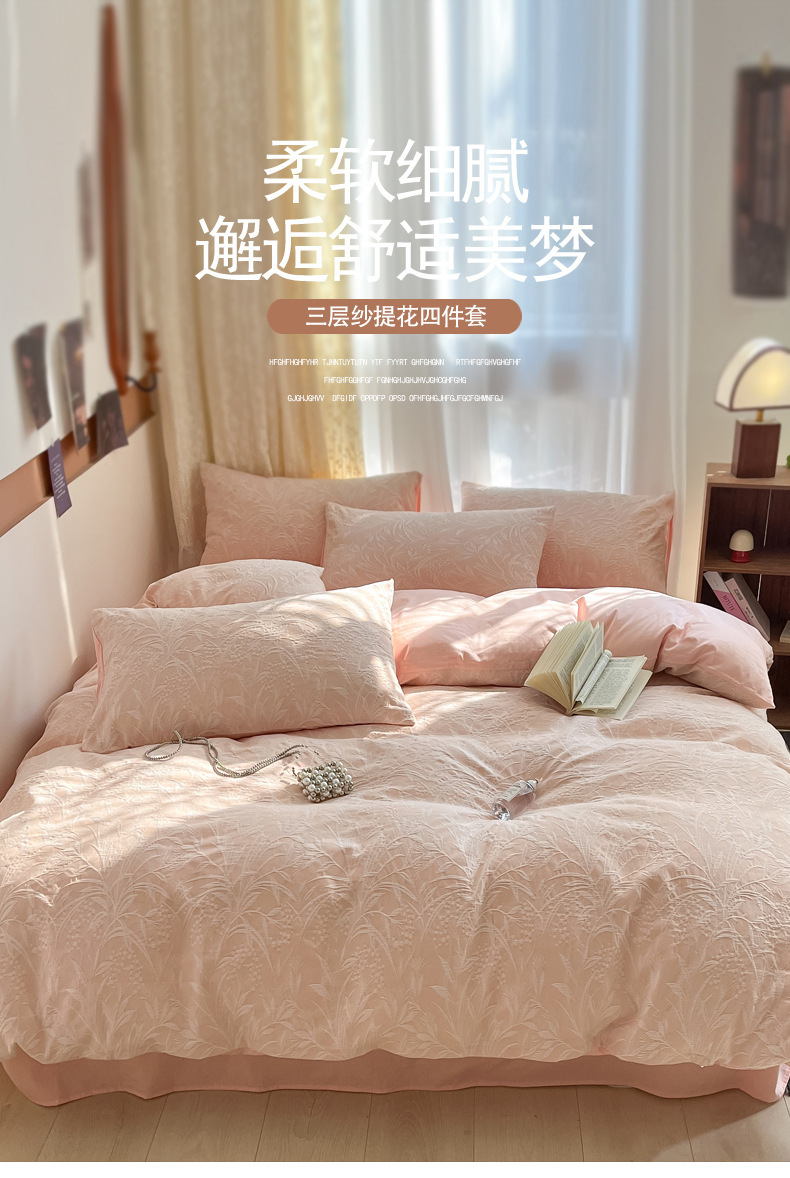 双层纱床上四件套100全棉纯棉提花粉色被套床单轻奢简约床品床笠