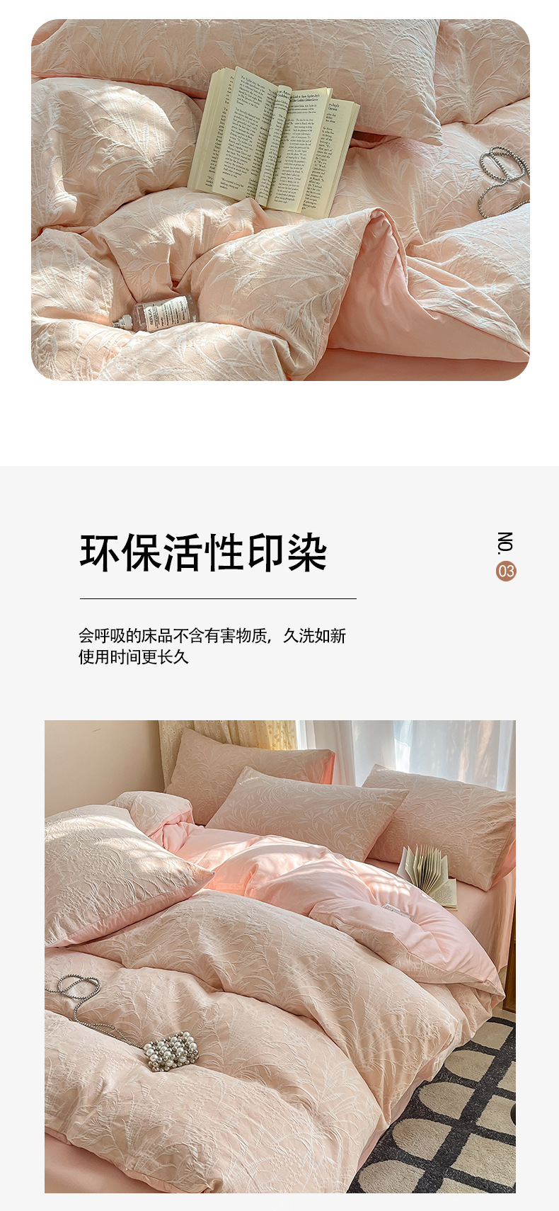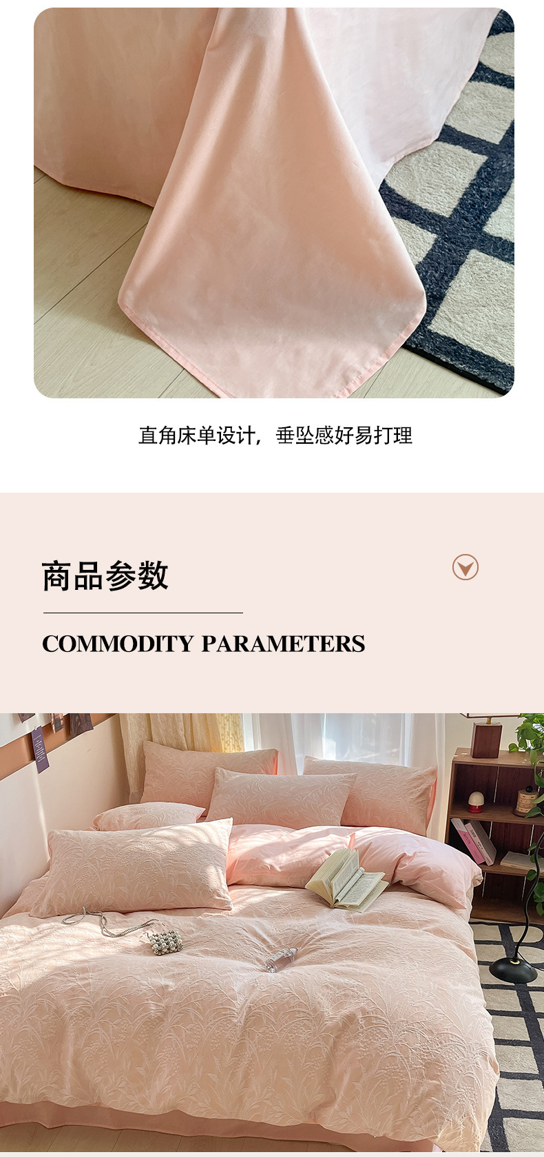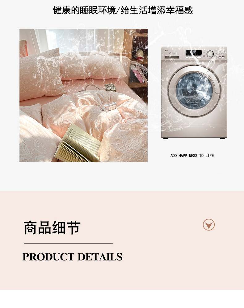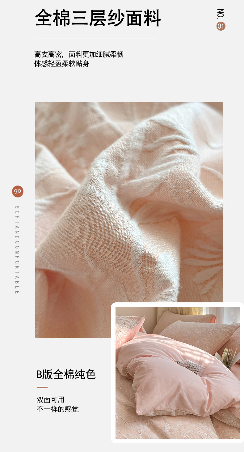 双层纱床上四件套100全棉纯棉提花粉色被套床单轻奢简约床品床笠