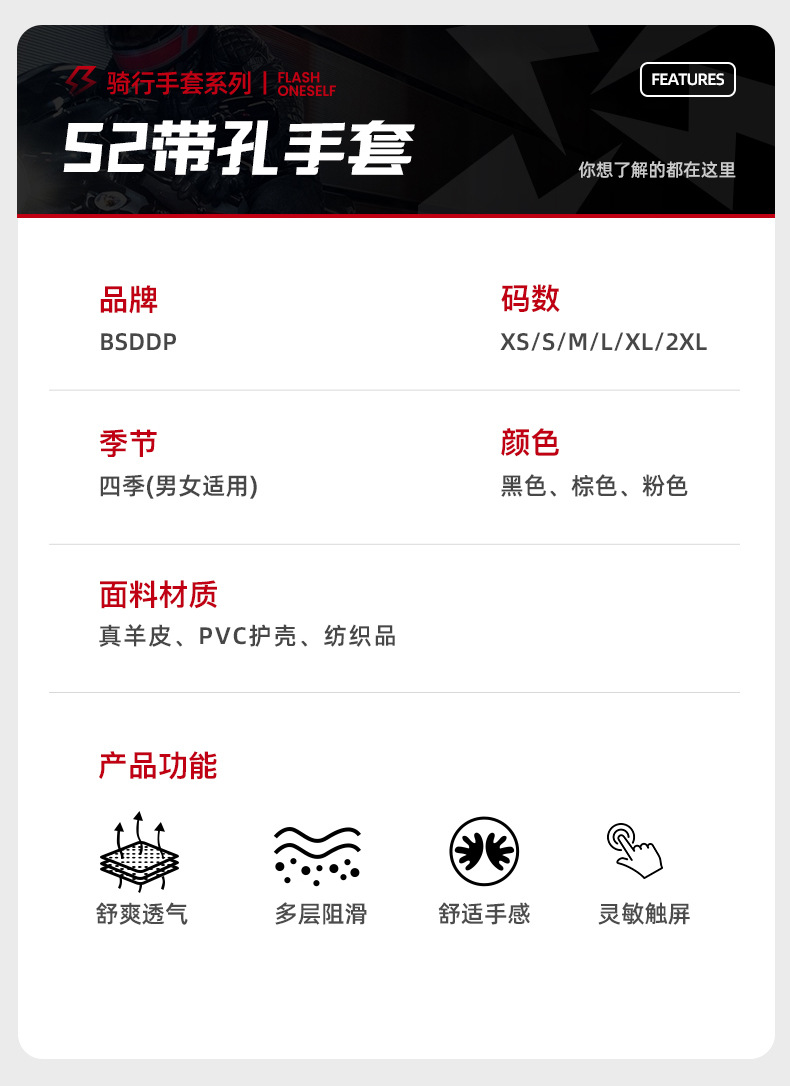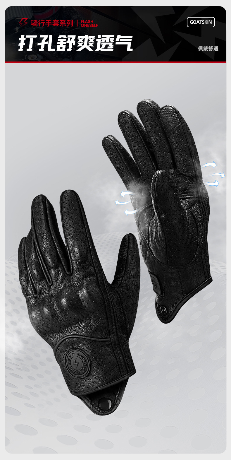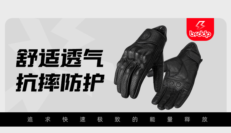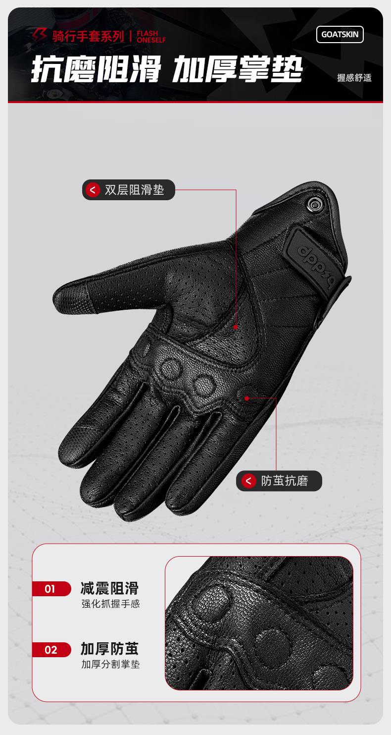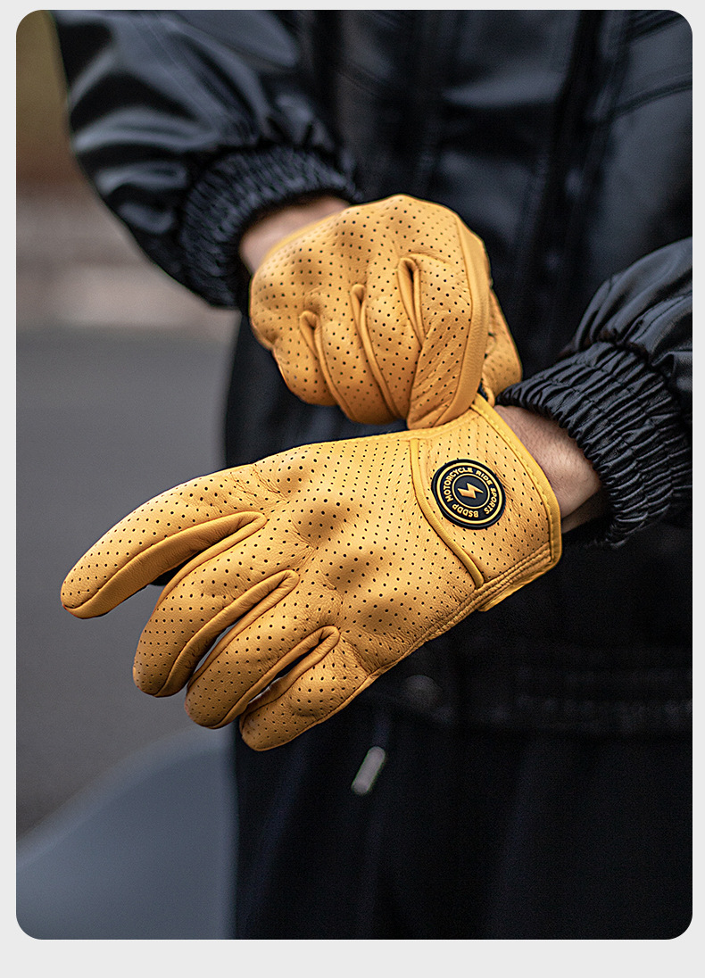 ┈厂家直销羊皮手套全指打孔透气越野机车赛车防摔透气触屏手套男